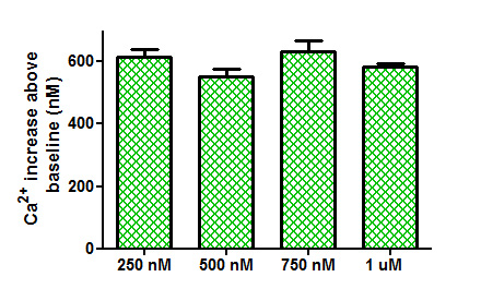 比較 從應用胰蛋白酶(100nM)到裝載有不同濃度的Fura-2AM的tsA-201細胞獲得的Ca 2+增加。